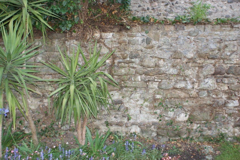 Ein wichtiger Unterschied gliedert den beschriebenen Wandabschnitt in zwei Bereiche. So besitzt der obere, nach Norden ansteigende Wandbereich ein mit Zementmörtel ausgefugtes Fugenbild, während dieser im unteren Wandbereich fehlt.