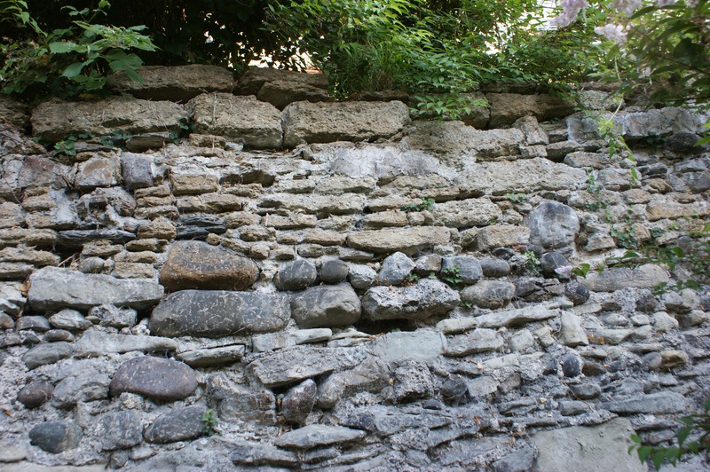 Zwischen Stadtmauer und Grabenmauer steht das Gelände bis zur Mauerkrone der Grabenmauer an. Zum Teil weit darüber, gründet versetzt zur Grabenmauer die eigentliche Stadtmauer.