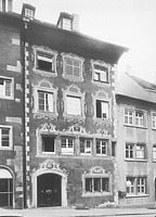 Straßenfassade; Aufnahme aus dem Jahr 1975 (nach der Restaurierung) / Wohnhaus in 88212 Ravensburg (01.01.1975 - LDA Tübingen, Aufnahme Bock/Oberopfingen (Arch. Nr. 369-75), 1975)