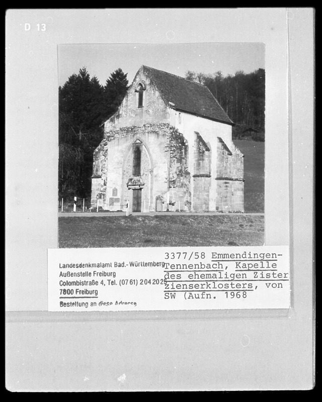 Die frühgotische Spitalkapelle zählt zu den wenigen baulichen Resten, die von dem ehem. Zisterzienserkloster Tennenbach übrig geblieben sind. Die Kapelle diente den Kranken des Klosters Tennenbach als Andachtsraum und war ursprüngnlich an das Infirmarium angebunden.