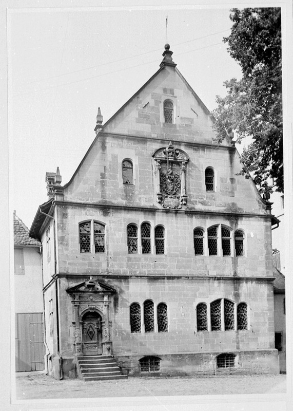 Zweigeschossiger, giebelständiger und werksteinsichtiger Massivbau auf niedrigem Kellersockel mit Satteldach,Triforien, Dachbekrönungen, umlaufender, horizontaler Gesimsgliederung, aufwendiger Portalrahmung und Ädikula im Mittelfeld des Dachgeschossgiebels.