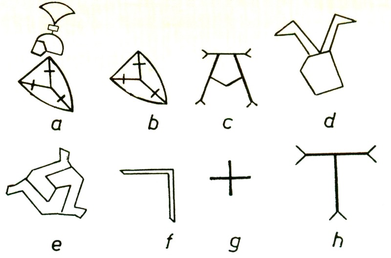 Verschiedene Steinmetzzeichen, welche an der Fassade der Regiswindiskirche zu finden sind. / Regiswindiskirche in 74348  Lauffen a. N., Lauffen am Neckar (Quelle: http://www.kirche-lauffen.de/images/ecics_39_62.jpg)