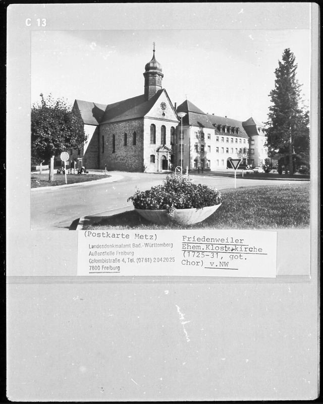 Die Klosterkirche wurde für das Benediktinerinnenkloster erichtet und am 25. Juli 1482 eingeweiht. 1570 übernahmen die Zisterzienserinnen das Kloster. Bis 1700 wurde die Kirche mit sieben Altären ausgestattet. Bei einem Großbrand am 27. März 1725 wurde das Kloster überwiegend zerstört. Anschließend erfolgte der barocke Wiederaufbau der Kirche nach Plänen Peter Thumbs auf teilweise bestehendem Mauerwerk. 1727 wurde die neue Kirche eingeweiht. Nach der Säkularisierung des Klosters im Jahr 1802 wurde die Kirche fortan als Pfarrkiche genutzt und mehrfach renoviert und umgebaut. Zu Beginn des 20. Jahrhunderts wurde die Langhausdecke mit drei neuen Fresken ausgestattet, 1912/ 13 erhielt es neue Glasfenster. 1976 wurde der Chor den liturgischen Erfordernissen entsprechend angepasst.