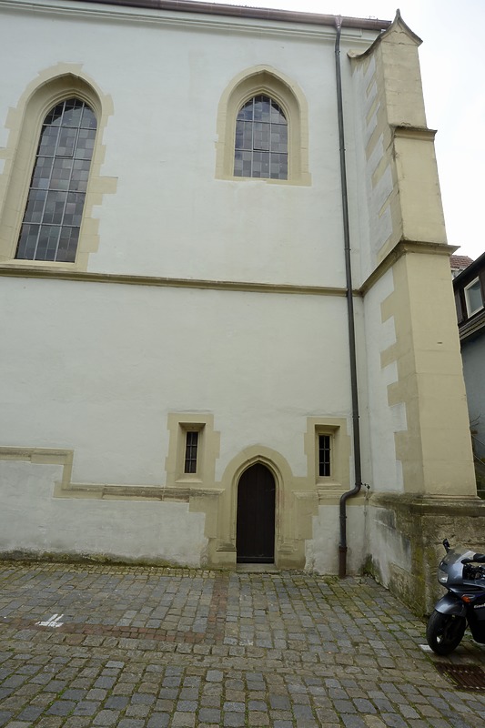 An dieser Stelle soll der Blick auf die nördlich an den Chor anschließende Sakristei gelenkt werden. Der Chor hat nach Norden hin keine Strebepfeiler und keine erkennbaren ehemaligen Fenster. Dies legt den Schluss nahe, dass entweder bereits bauzeitlich um 1500 nördlich am Chor ein Anbau vorgesehen war oder aber, dass sich dort um 1500 bereits ein Baukörper befand, der in den Neubau integriert werden sollte.