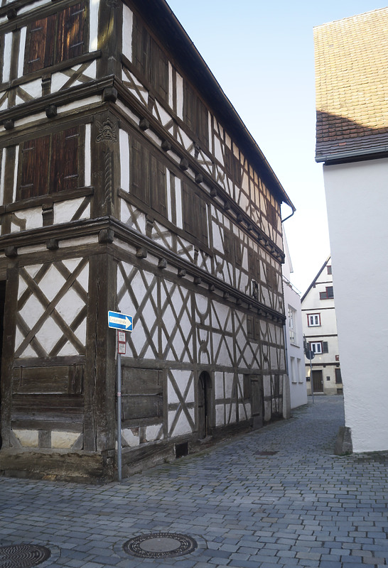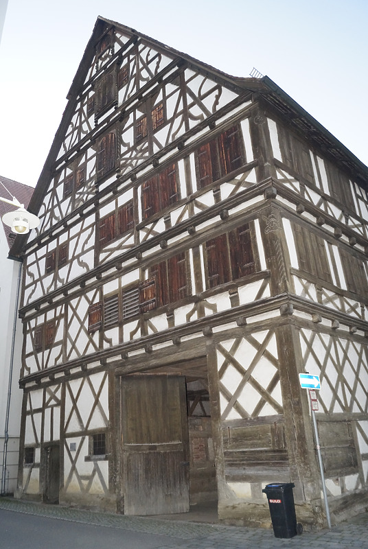 Die sog. Mohrenscheuer bildet mit ihrem reichen Zierfachwerk eines der prägnantesten Gebäude in der an Fachwerkbauten reichen Donaustadt: oberhalb des zweigeschossigen Erdstocks, der auch die Tenne umfasst, erheben sich die geschossweise abgezimmerten Stockwerke 1 und 2. Den oberen Abschluss bildet ein dreigeschossiger Dachstock unter einem Satteldach. Von der nordwestlichen Giebelseite abgesehen kragt jeder Stock auf jeweils drei Seiten über das jeweils darunterliegende Stockwerk aus.