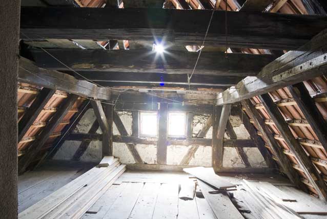 Es finden sich in den Dachkammern noch Hinweise auf Wendebohlentüren, die Türblätter selbst sind aber nicht erhalten.