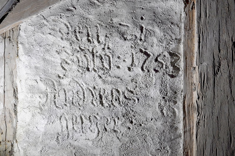 Im Zuge der Umnutzung zur Mitte des 18. Jahrhunderts wurden die Fachwerkbalken belassen. Nur im Warmbereich des Wohnteils wurden bei den Außenwänden die Flechtwerk-Ausfachungen durch Bruchstein-Ausfachungen ersetzt. Gut zu erkennen ist dieser Umbau an der östlichen Giebelwand und im Obergeschoss der südlichen Außenwand. Alle neu errichteten Wände wurden als Fachwerkwände mit Bruchstein-Ausfachung erbaut. So auch die beiden inschriftlich datierten Wände im Dachgeschoss.