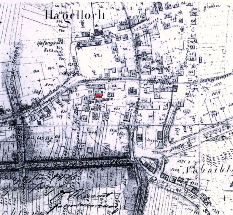 Das Gebäude gehört mit den benachbarten Häusern zum ehemaligen Schlössle von Hagelloch, einem ummauerten Gutshof aus dem Hailfinger Rittergeschlecht. Durch seine Bauzeit 1419/20 handelt es sich vermutlich um das älteste erhaltene Haus in Hagelloch.