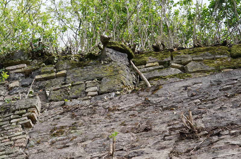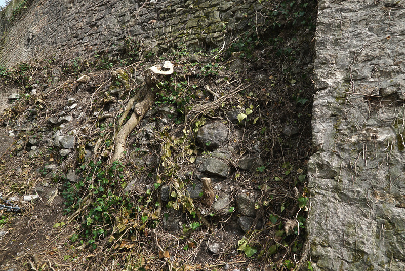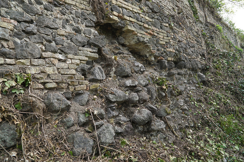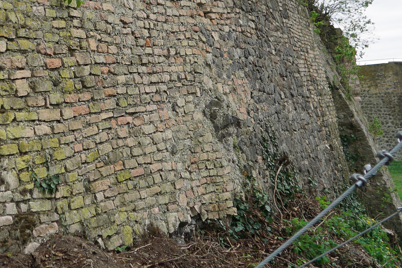 geböschte Nordmauer mit vielen Backsteinen