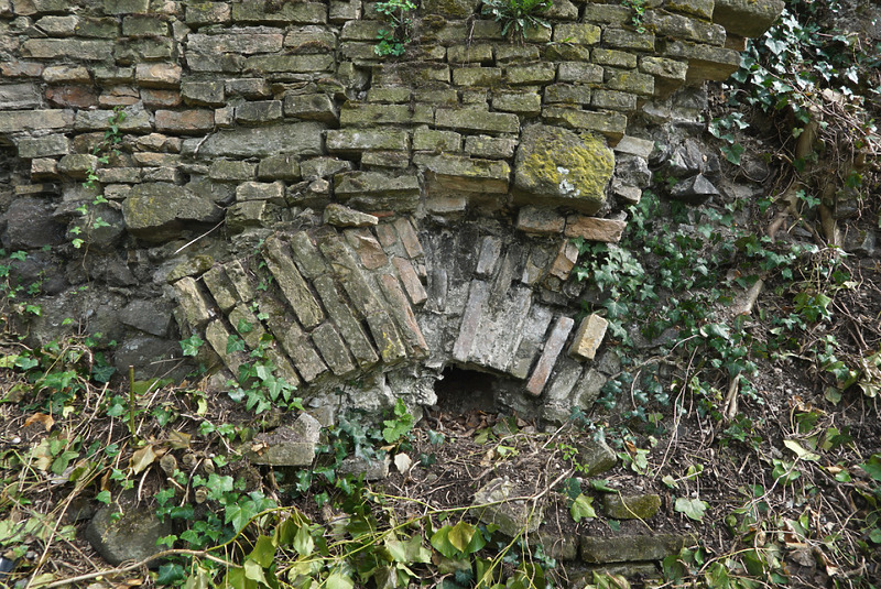 Im Abbruch, Stichbogen am Mauerfuß mit offenbar zeitgleicher Untermauerung / Stadtmauer in 79206 Breisach, Breisach am Rhein (12.2021 - S. King)