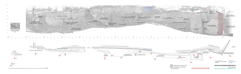 Ansicht und Grundriss mit Baubefunden / Stadtmauer in 79206 Breisach, Breisach am Rhein (12.2021, 04.2018 - S. King,