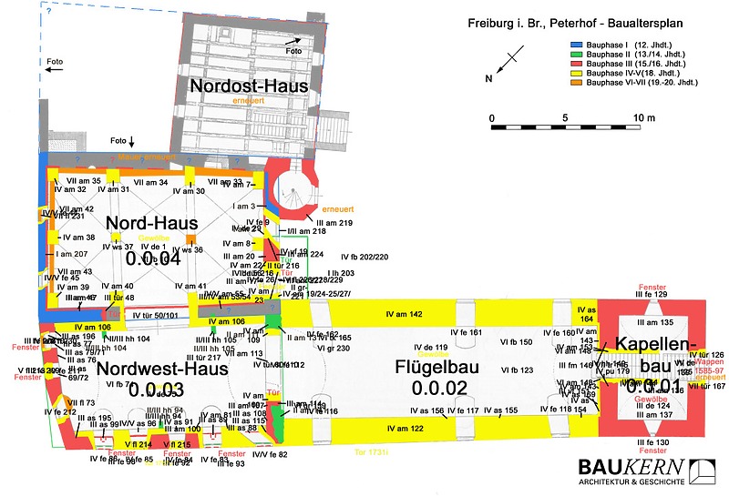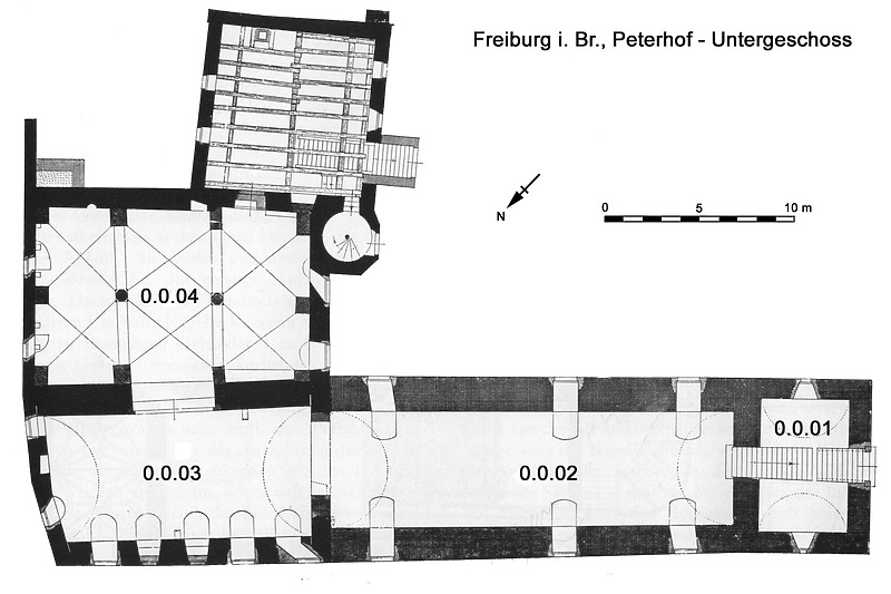Der Peterhof, ehemaliger Stadthof des Benediktinerklosters St. Peter auf dem Schwarzwald, umfasste einst ein dreimal so großes Grundstück und gehörte damit zu den größten Liegenschaften in der Stadt. Erhalten hat sich von dieser Anlage das Hauptgebäude an der Niemensstraße mit tiefen Gewölbekellern, Wendeltreppenturm und Renaissancekapelle. Das Gebäude wird zurzeit für die Universität umgebaut. Das Universitätsbauamt nutzte die Gelegenheit und gab eine bauhistorische Untersuchung in Auftrag, die Erstaunliches zu Tage förderte: Im Peterhof konnten mittelalterliche Bürgerhäuser freigelegt werden, die im 16. und 18. Jahrhundert zum heutigen Peterhof umgebaut wurden. Die Baubefunde und bisher unbekannte Ansichten und Urkunden ermöglichen es nun die komplexe achthundertjährige Bau- und Nutzungsgeschichte des Hofs nachzuzeichnen.
