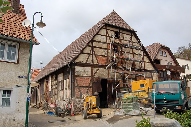 Die Hauptaufgabe bestand in der Sicherung der absinkenden Westwand, daraus resultierend musste eine neue kraftschlüssige Verbindung des Dachstuhls wieder hergestellt werden. Denn alle Innenbundachsen waren durch die Kippung der Westwand in den Bereichen der im 19. Jh. unglücklich eingefügten Stöße auseinander gerutscht. Zusätzlich gab es alte Wasserschäden und aufklaffende Holzverbindungen sowie gebrochene Kehlbalken und diverse Pfetten, Büge und Windverbände, die ersetzt bzw. neu gesichert werden mussten. Die verputzten Gefache wiesen im Außen- und Innenbereich Fehlstellen auf.