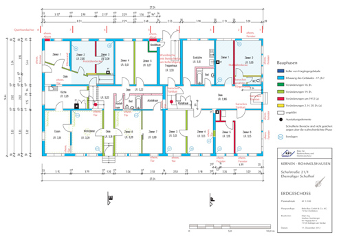 Umbau und Sanierung des Gebäudes mit Einrichtung mehrerer Wohneinheiten.