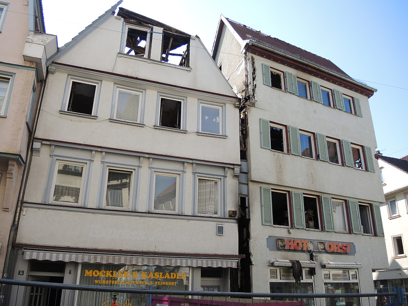 An den Gebäuden Pliensaustraße 13 und Oberer Metzgerbach 1 ist am Abend des 24. Juni 2015 ein Brand ausgebrochen, der im wesentlichen die beiden zueinander stehenden Außenwände sowie die Dachtragwerke der Gebäude beschädigt hat. Beide Gebäude konnten nach Sanierung weitestgehend erhalten werden.