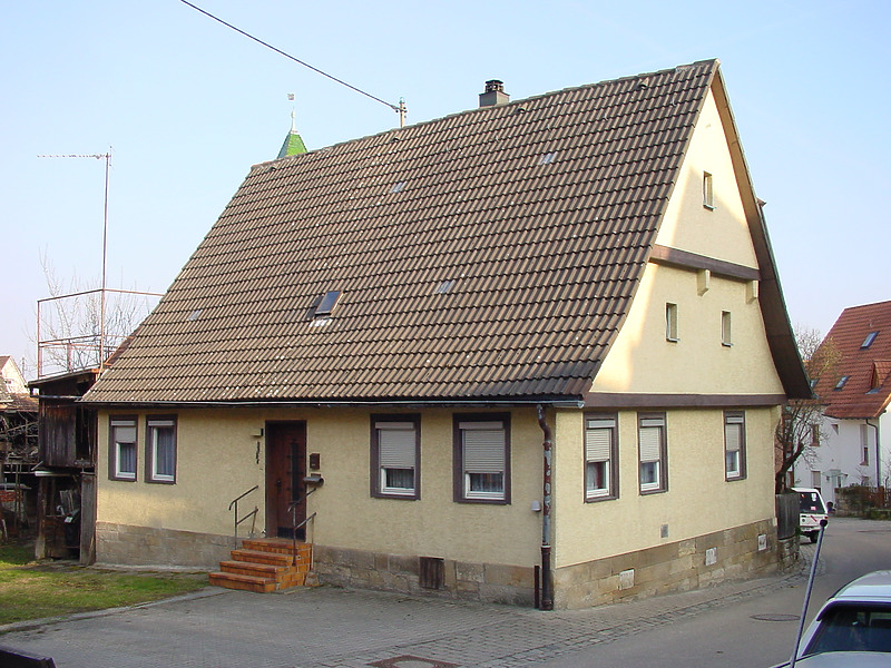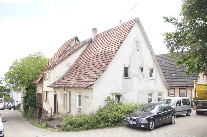Ansicht von Westen auf Kirchstraße 8 / Wohnhaus mit Scheune (abgegangen) in 70794 Filderstadt, Plattenhardt ( 17.02.2004 - Tilmann Marstaller)