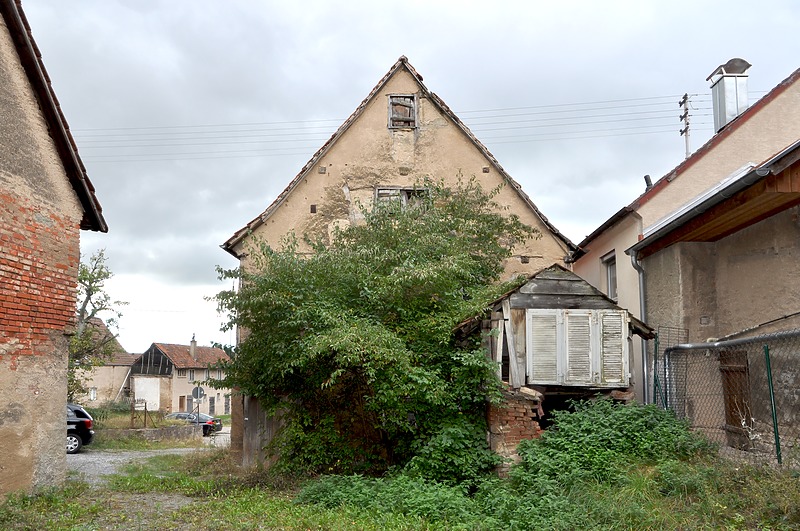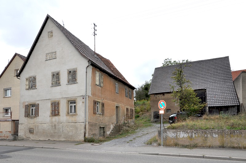 Beim untersuchten Gebäude befindet sich zwischen dem giebelständigen Wohnhaus und der im hinteren Bereich situierten traufständigen Scheune ein von der Straße her ansteigender Hof.