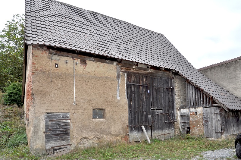 Das Ökonomiegebäude stellt sich als Scheune mit Mitteltenne und Stall dar. Eine steinerne Treppe führt den Hang an der westlichen Giebelseite der Scheune außen hinauf. Beide Baukörper präsentieren sich als größtenteils verputzte Fachwerkkonstruktionen. Das Ökonomiegebäude besitzt Um- und Einbauten aus Ziegelmauerwerk.