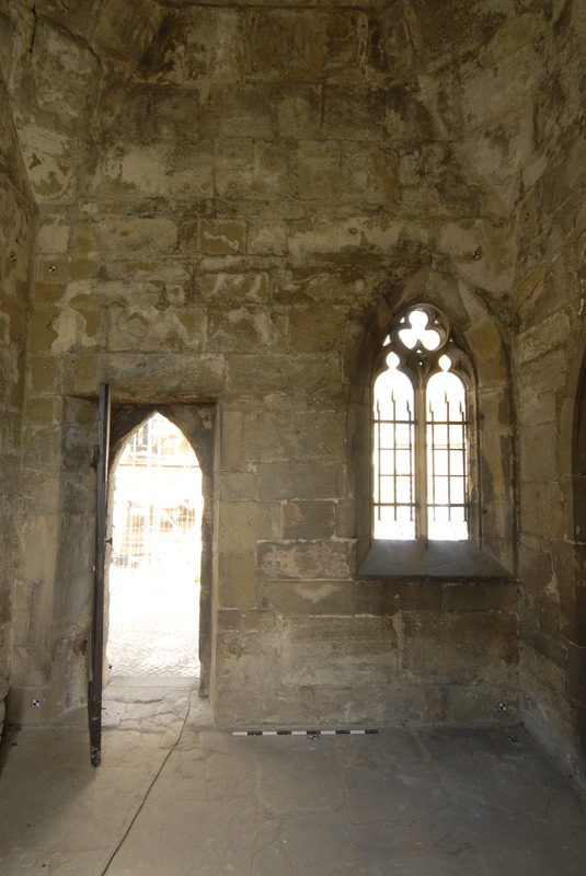 Einbau von Spitzbogenfenstern mit Eselsrücken und frühgothischem Maßwerk;