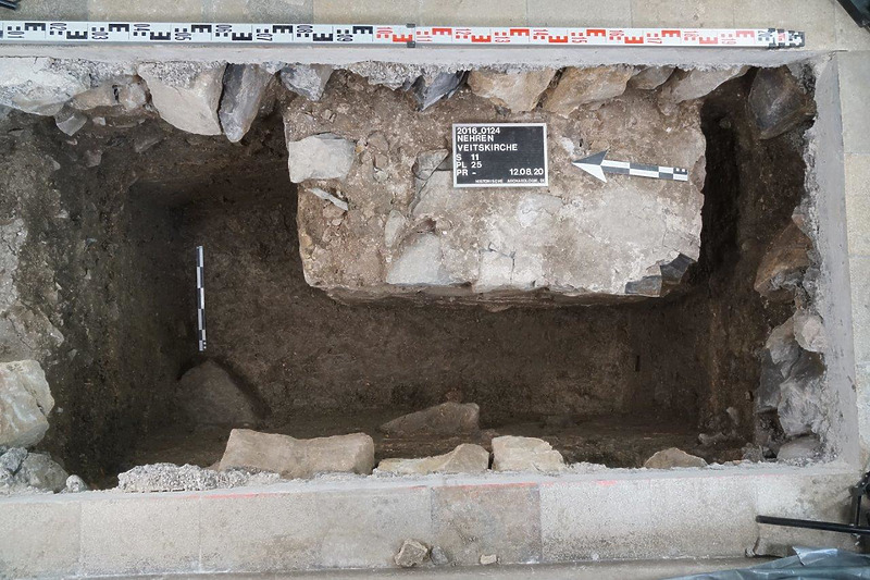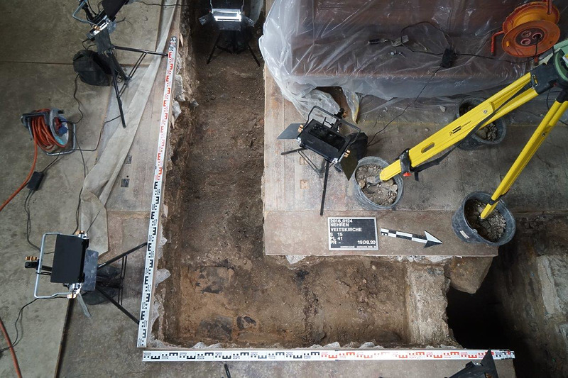 2020 wurden im Zuge des Einbaus einer neuen Warmluft-Bodenheizung archäologische Untersuchungen notwendig, bei denen Vorgängerbauten zur bestehenden Kirche von 1430 (d) / 1587 (d,i) zu Tage traten. Eine Vorgängerbebauung des 10./11. Jahrhunderts ist lediglich durch C14-datierte Holzkohlestücke in einem Lauf-/Arbeitshorizont unter der ersten Kirche indirekt zu erschließen. Der erste Steinbau, eine Saalkirche mit leicht eingezogenem, vermutlich gewölbtem Chor, datiert vermutlich erst "um 1100". Nach Brand erfolgte die Neuerrichtung mit nicht eingezogenem Rechteckchor "um 1300".