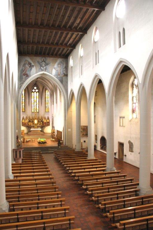 Die kath. Pfarrkirche wurde als Klosterkirche eines franziskanischen Konvents errichtet. Anstelle einer seit 1206 nachgewiesenen St. Martins- Kapelle wird gegen 1286 eine neue Kirche in der Größe des heutigen Chors erbaut. Um die Mitte des 14. Jahrhunderts ist das Langhaus abgeschlossen.