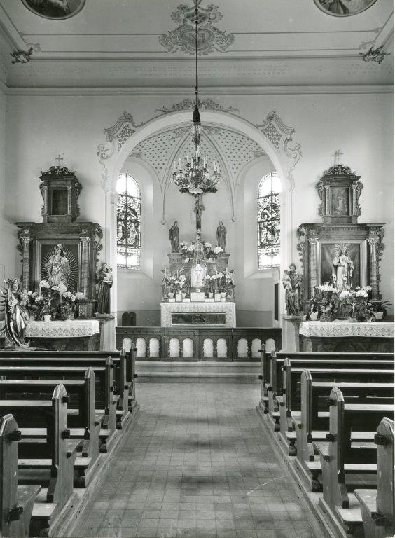 Blick zum Chor nach Nordosten / Kath. Filialkirche St. Maria Empfängnis in 79848 Bonndorf-Boll (Bildarchiv der Bau- und Kunstdenkmalpflege, Freiburg (LAD))