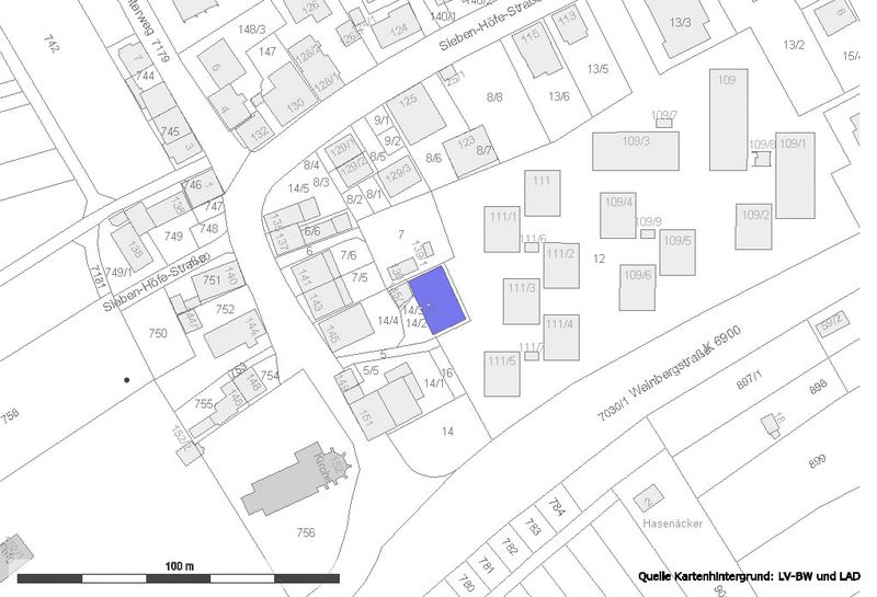Südwestlich am Ortsrand in der Nähe der evangelischen Kirche gelegen.