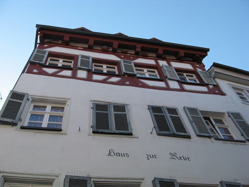 Das Haus zur Rebe bildet zusammen mit dem Haus zum schwarzen Bock in der Brückengasse 7 ein Wohnhauskomplex und ist seit 1267 belegt.
