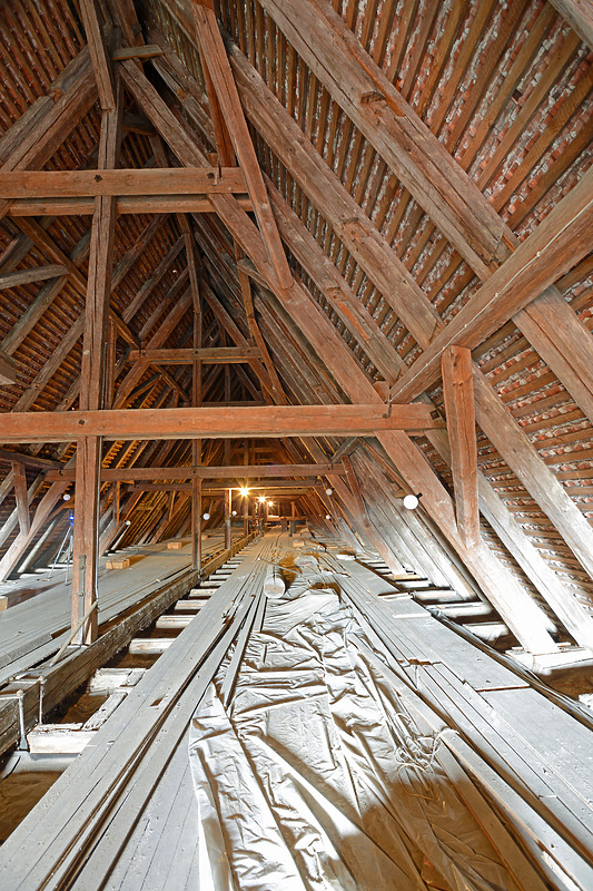 Das Dachwerk des Mittelschiffs ist über dem Langhaus und dem Chor einheitlich ausgeführt.