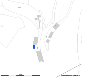 Südseitiger Anbau an das Gastwirtschaftsgebäude der Wimsener Mühle parallel zum steil aufsteigenden Felshang stehend.