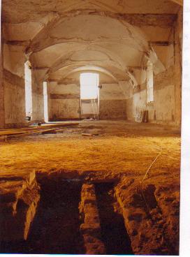Refektorium, nach Absenkung auf das barocke Niveau. Von Norden. / Refektorium in 97877 Bronnbach